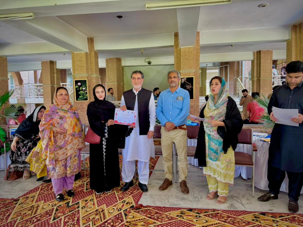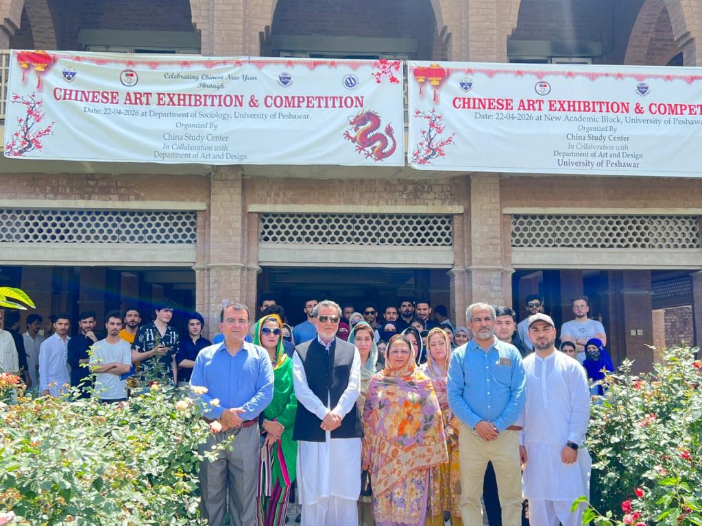 The China Study Centre, University of Peshawar, organised a Chinese Arts Exhibition and Competition to celebrate China’s rich cultural heritage and the deep-rooted ties between Pakistan and China. The exhibition, held at the New Academic Block, was jointly organised by the China Study Centre and the Department of Arts and Design. A large number of students and faculty members attended the event and appreciated the skill and talent of students who created the artworks. The event marked the 75th anniversary of diplomatic relations between Pakistan and the People’s Republic of China and aimed to foster cultural exchange and promote mutual understanding through art. Students from the Department of Fine Arts showcased diverse works, including paintings, calligraphy, and ceramic pieces inspired by traditional Chinese motifs. Several exhibits skillfully blended Chinese artistic elements with Pakistani cultural themes, symbolising the friendship and cultural harmony between the two nations. Faculty members, students, and distinguished guests attended the exhibition and commended the participants’ creativity. Speaking at the event, Dr. Noor Sanauddin, Chief Organiser, highlighted the importance of such initiatives in strengthening people-to-people ties and encouraging students to explore cross-cultural artistic expression within the broader framework of Pakistan-China friendship and the China-Pakistan Economic Corridor (CPEC). He also appreciated the role of the Chinese Embassy for financial support for this event and hoped that more and more such events would be organised in the near future. Prof. Muhammad Naeem Qazi, Pro-Vice Chancellor of the University, presided over the closing ceremony, where prizes and certificates were distributed to outstanding participants